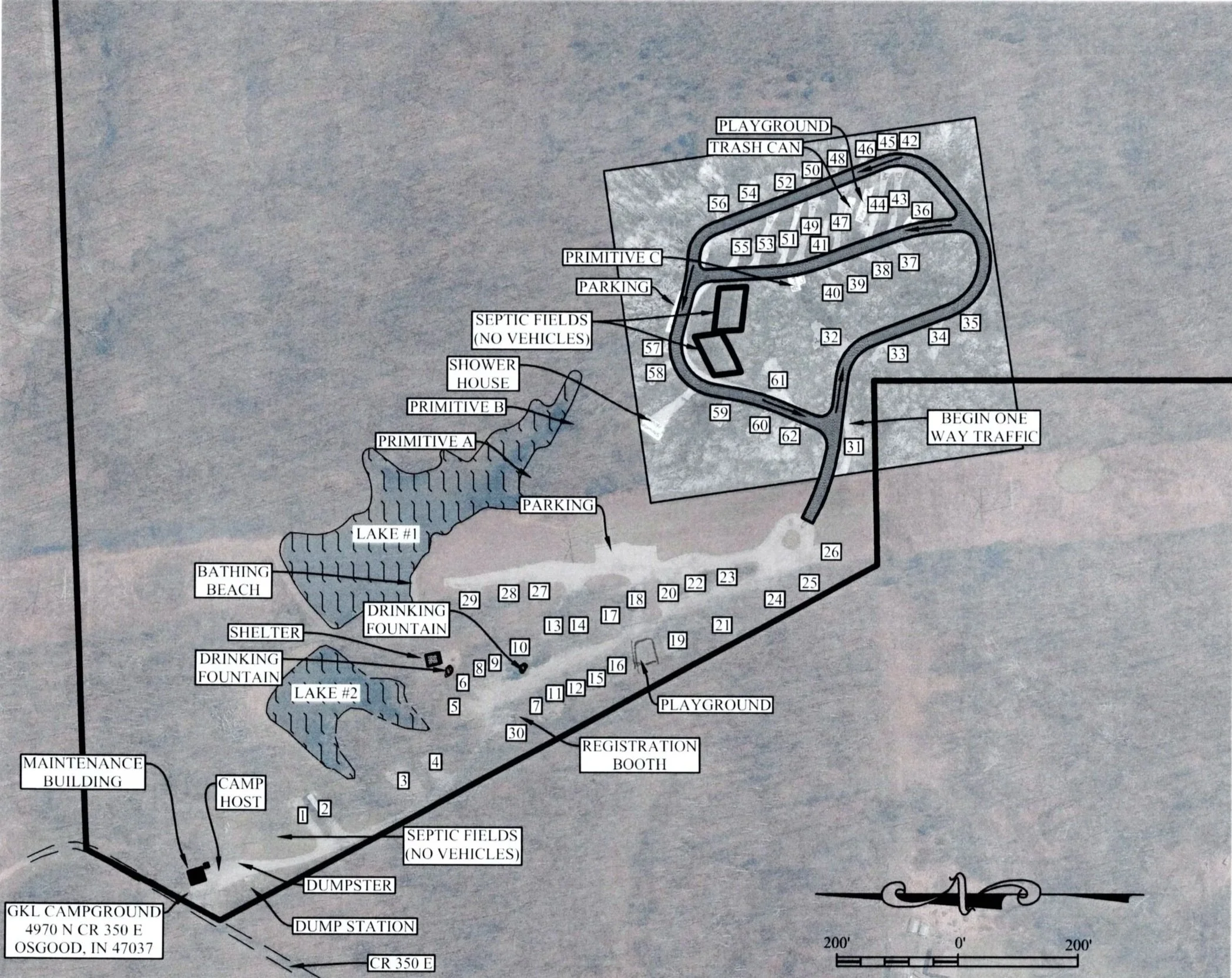 For everyone’s safety, please drive slowly throughout the campground and on County Road 350 E (20 MPH speed limit), as children are often at play. Please dispose of all trash in the on-site dumpster upon departure.